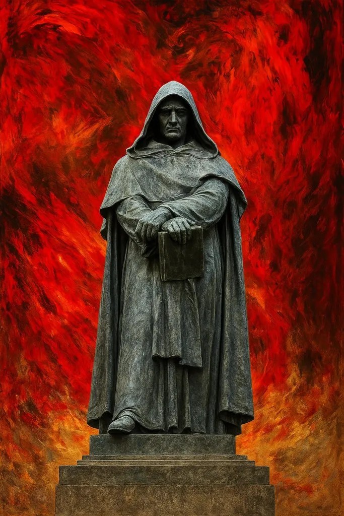 Queste le parole che, secondo la tradizione, furono rivolte ai cardinali inquisitori da uno dei più celebri eretici della nostra storia: il filosofo Giordano Bruno, arso vivo nel 1600 a Campo de’ Fiori, e oggi al centro del libro firmato da Giovanni De Ficchy